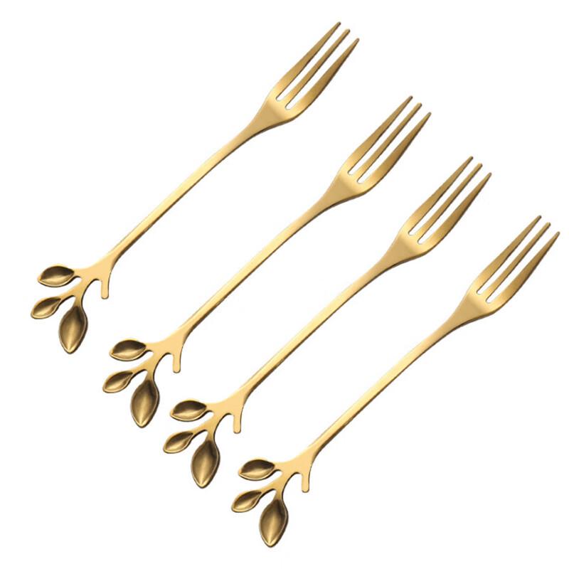 Trendy Golden Leaf Wooden Fruit Forks - 4 Pack