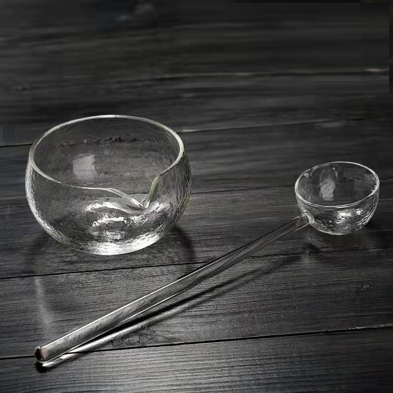 450ml Japanese Style Matcha Hammered Glass Tea Bowl Spoon Dry Brewing Method Green Tea Tea Maker Kung Fu Tea Set