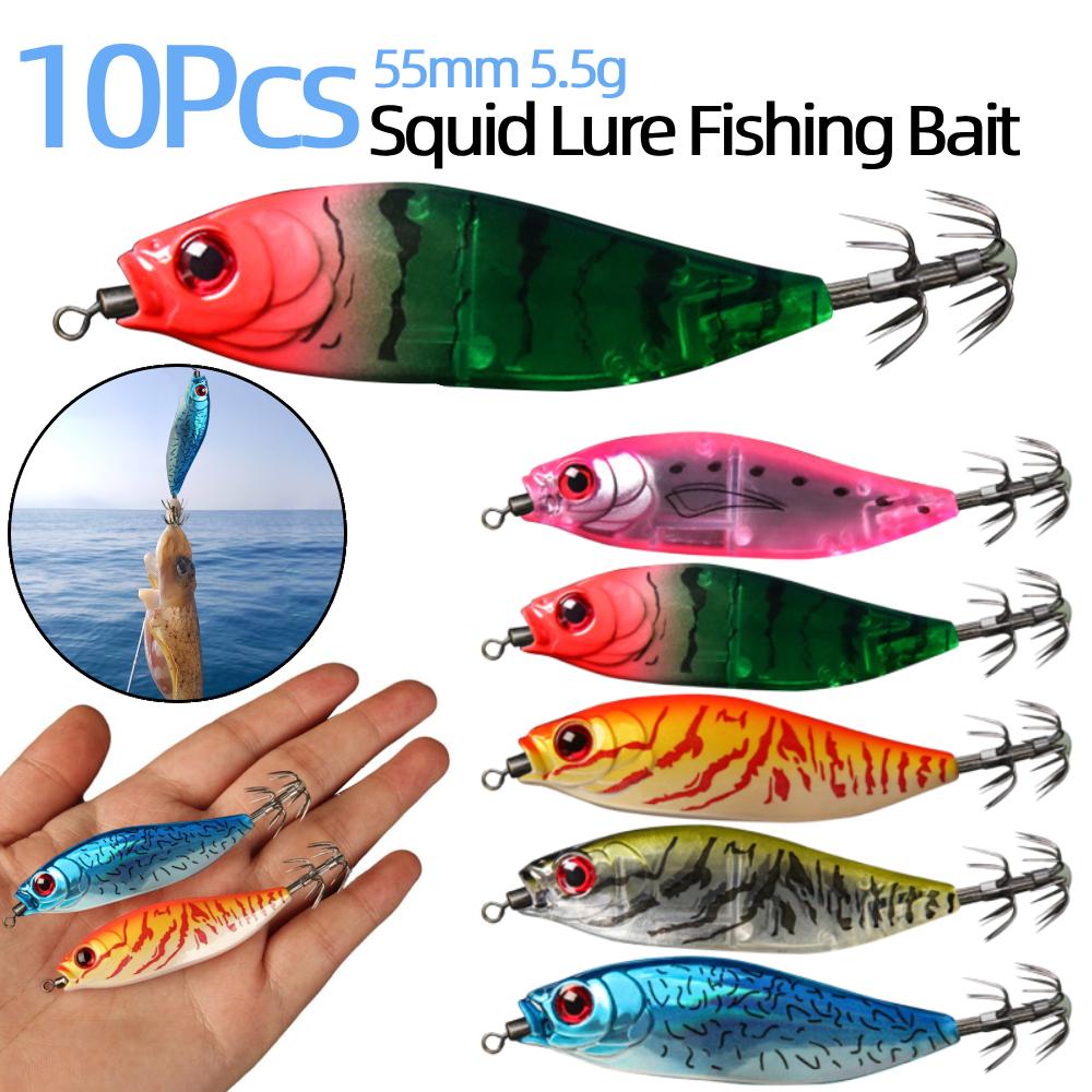 10Pcs Squid Bait 55mm 5.5g UV Squid Jig Artificial Bait Sea Fishing Lure Octopus Webfoot EGI Cuttlefish Fishing Lure Accessories
