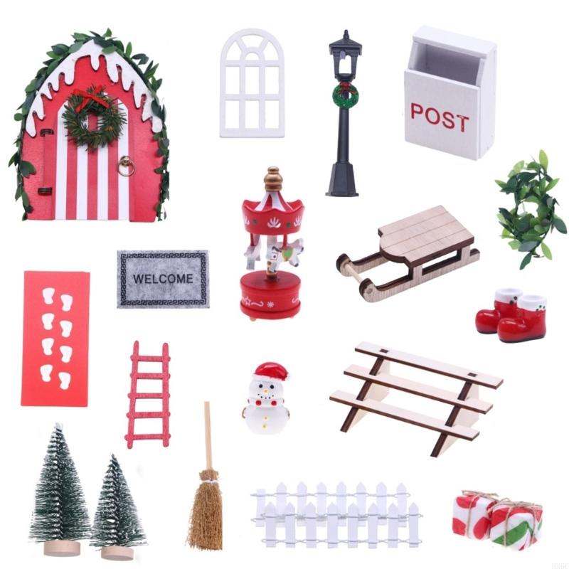 Tiny Openable House Door Decoration Miniature Dollhouses Model Christmas Gnomes Scene For Holiday Shelf Decoration HX6C