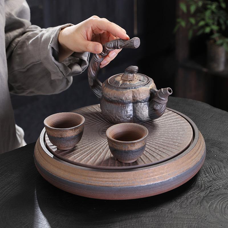Coarse Pottery Gilt Iron Glaze Side Handle Pot Single Pot Brewing Teapot Teacup Retro Firewood Burning Kung Fu Tea Set