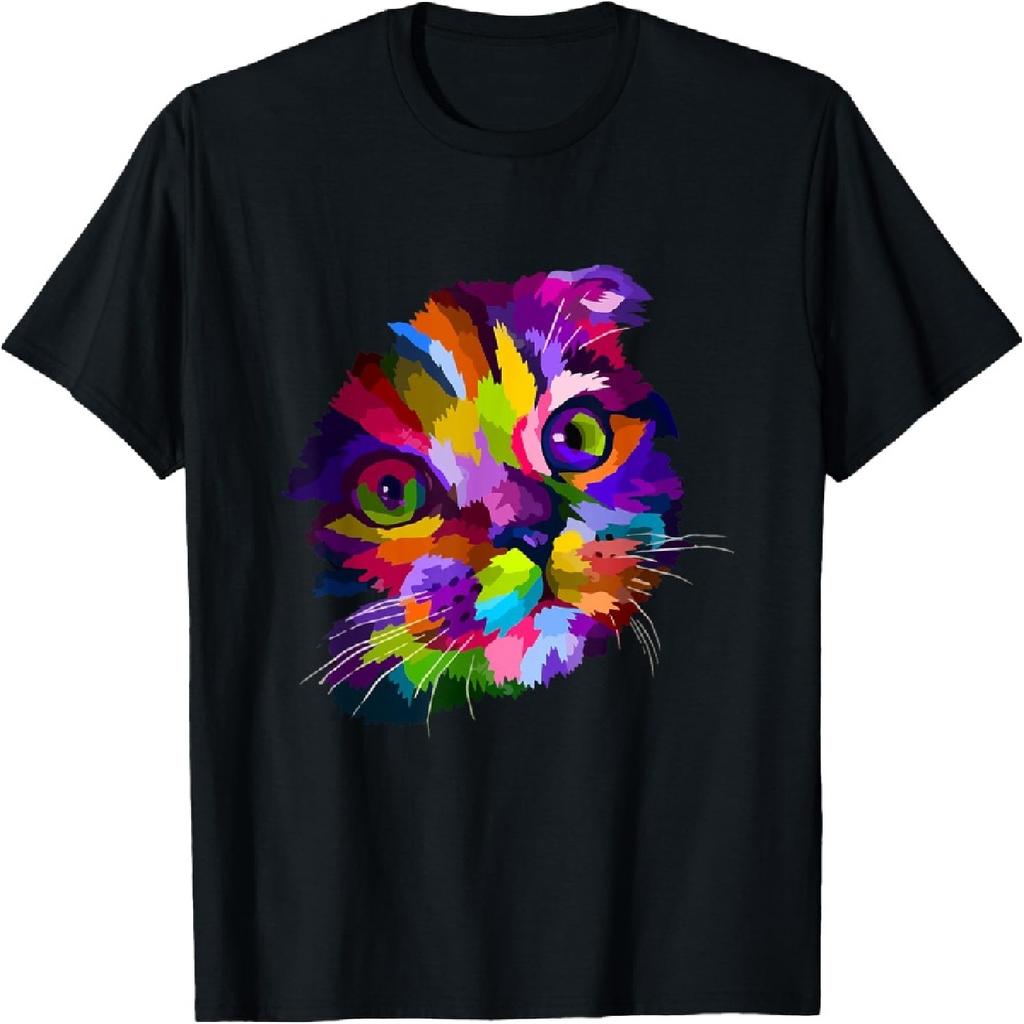Colorful Cat Head Portrait Design Pop Art Style Kitten Owner T-Shirt for Men Women Girls Kids