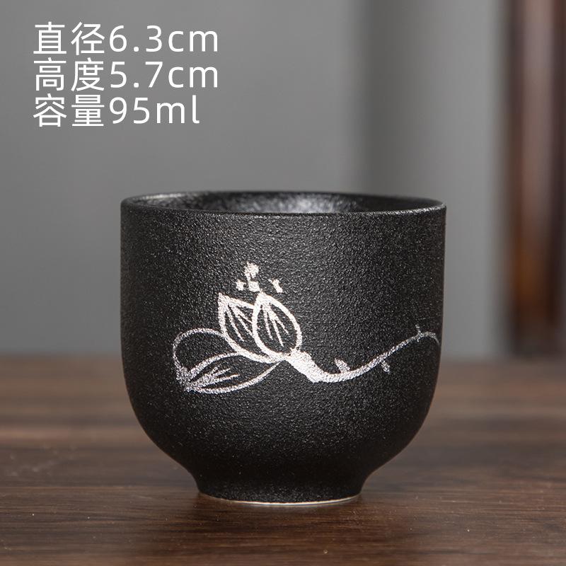 Japanese Style Black Ceramic Hand-Painted Tea Cup Kung Fu Tea Set Lotus Bamboo Rhythm Master Cup Kung Fu Tea Set Tea Bowl Househ