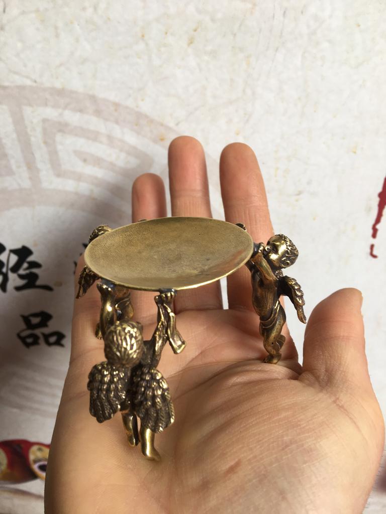 Free Shipping Chinese Bronze Plate Cats Lion, Angel Animal Oil Lamp Candle Holder Candlestick Statue