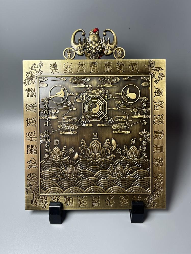 New Ornament Hanging Handmade Painted Wide18High23Large Square Pure Copper Mountain and Sea Town In Centimeters