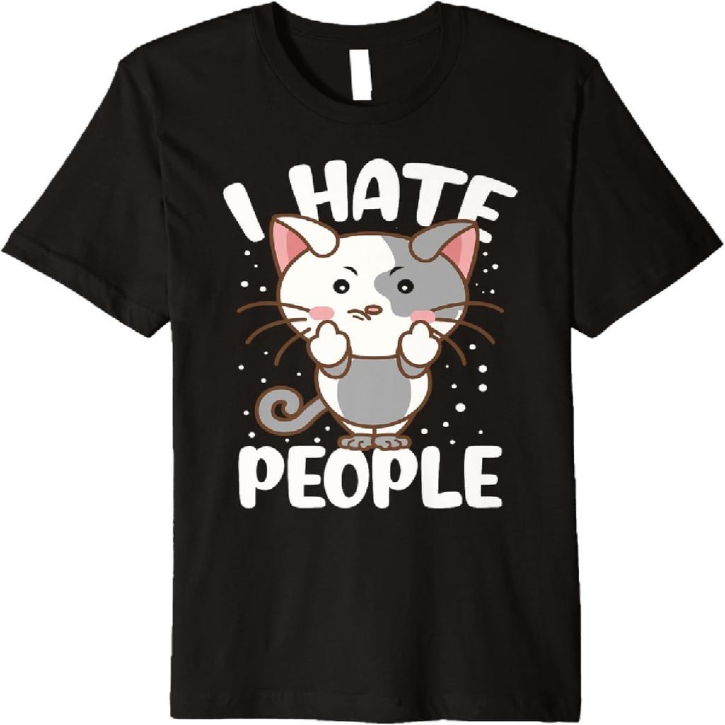 I Hate People Middle Finger Funny Cat Lovers Premium T-Shirt