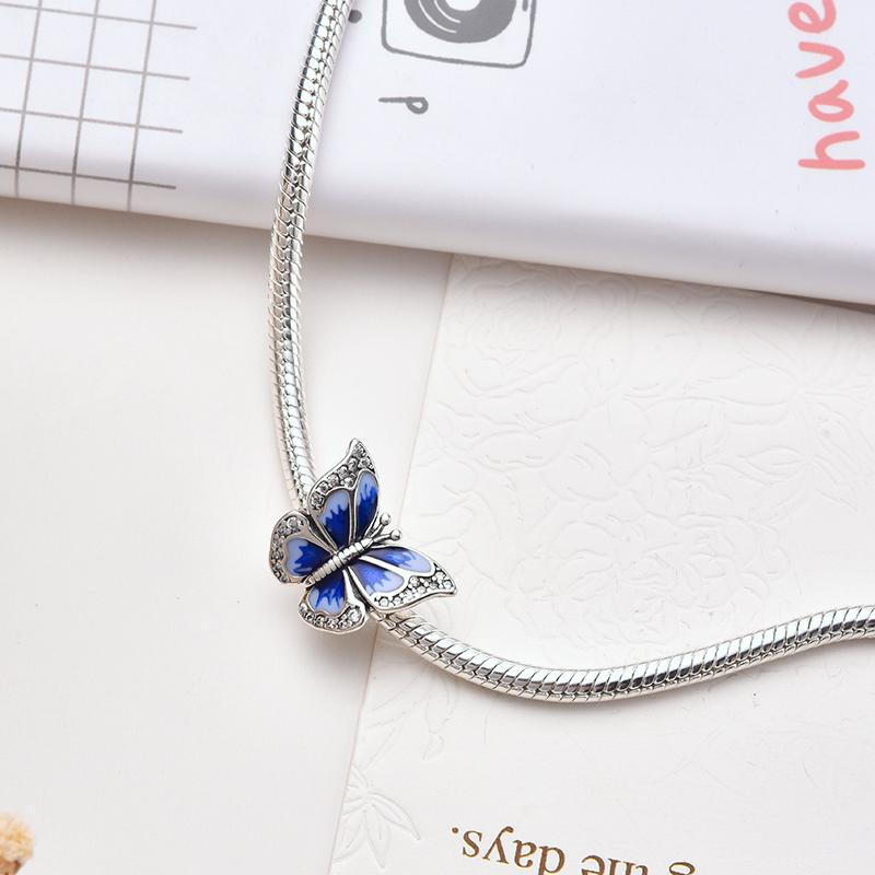 Blue Dragonfly Butterfly Birds Dangle Charm European Silver Bracelet Exquisite Bead DIY Jewelry Gift for Women