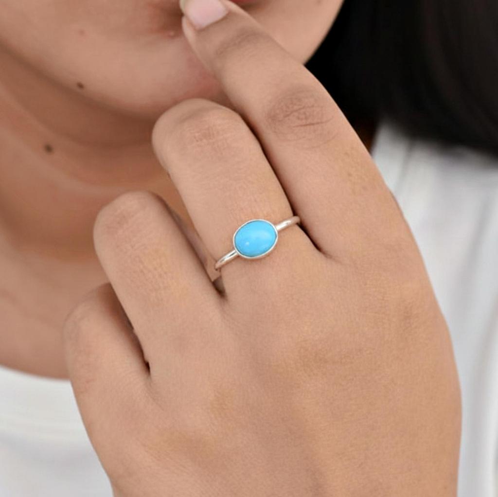 Arizona Turquoise Gemstone Ring, 925 Sterling Silver Jewelry, Minimalist Handmade Statement Ring for Women