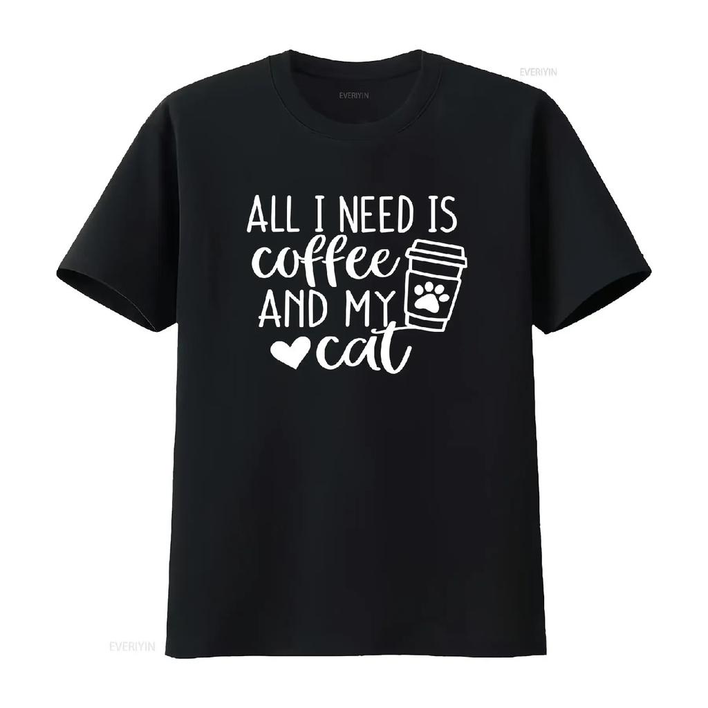 All I Need Is Coffee and My Cat Unisex T Shirt for Lovers Vintage Washed Graphic Stylish Versatile Casual Comfortable Unisex