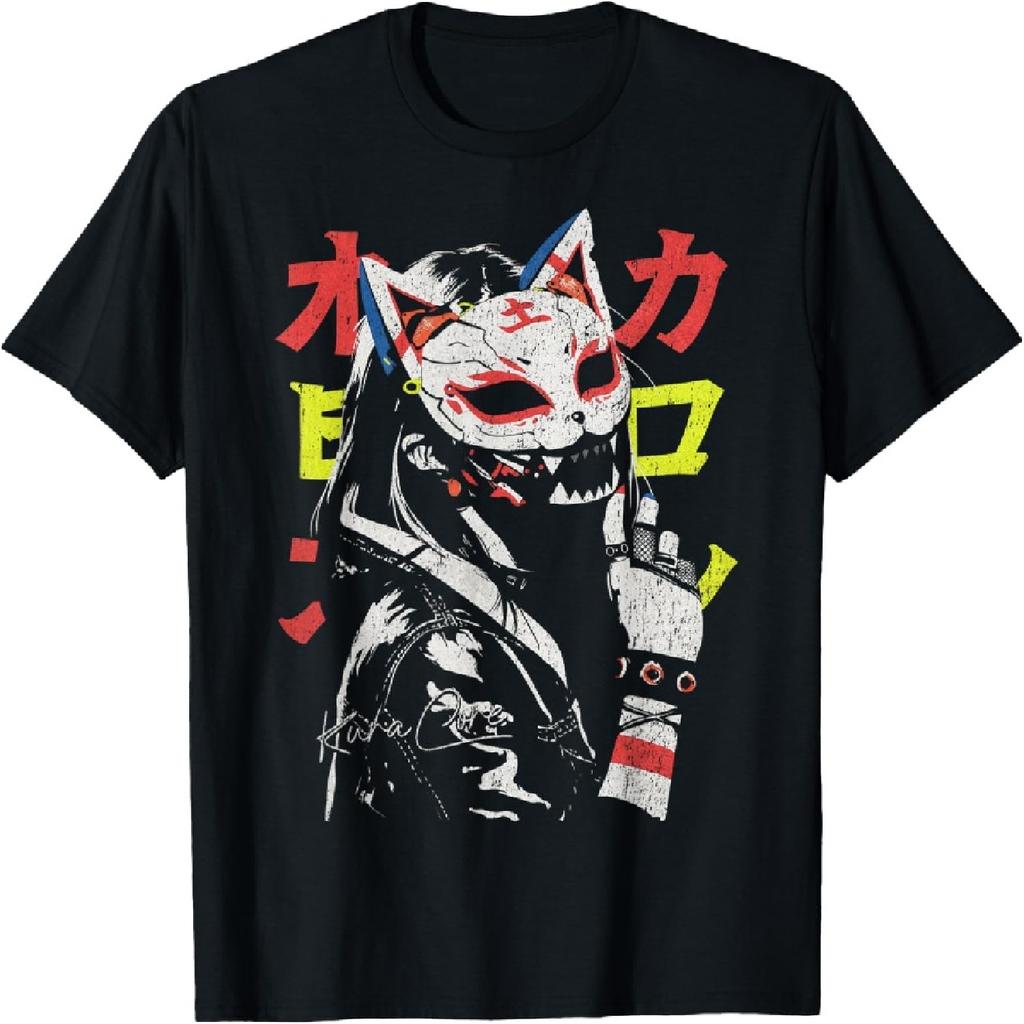 Japanese Streetwear Cyberpunk Y2K Techwear Neko Manga Anime T-Shirt