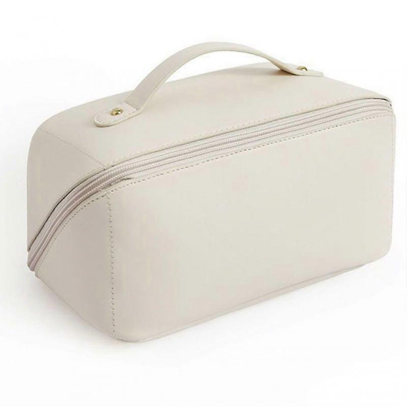 Toiletry Bag PU Waterproof Large Capacity Compartment Design Portable Delicate Cosmetic Make Up Bag Milky White