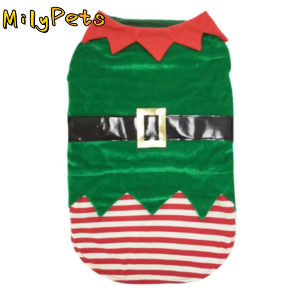Green Elf Pet Cosplay Costumes Winter Warm Comfortable Christmas Dog Clothes Pet Clothing Striped Puppy Vest Coat Dressing Up