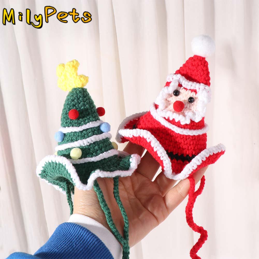 Pet Costume Cute Pet Christmas Hats Soft Comfortable Cat Knitted Hat Handmade Pet Cosplay Hat Pet Photography