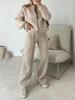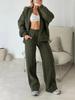 This stylish women's sportswear set features a zip-up hoodie paired with wide-leg pants, designed for ultimate comfort and a relaxed fit. Available in versatile colors including army green, dark green, gray, brown, and beige, this set is perfect for casual outings or light workouts. The breathable fabric ensures ease of movement, while the modern silhouette adds a trendy touch to your wardrobe.