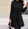 Women's Mid-Length Coat, Single-Breasted Notched Lapel, Casual Outerwear, Available In Grey, Mustard Yellow, and Black