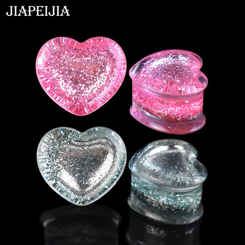 2pcs 6-50mm Twinkle Heart-shaped Ear Plug Tunnels Gauges Ear Stretcher Body Jewelry for Women Men