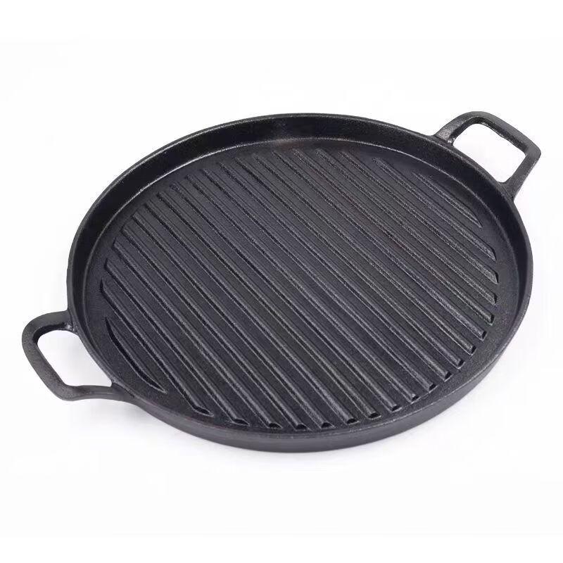ZISIZ 28cm Cast Iron Striped Grill Pan with Double Handles