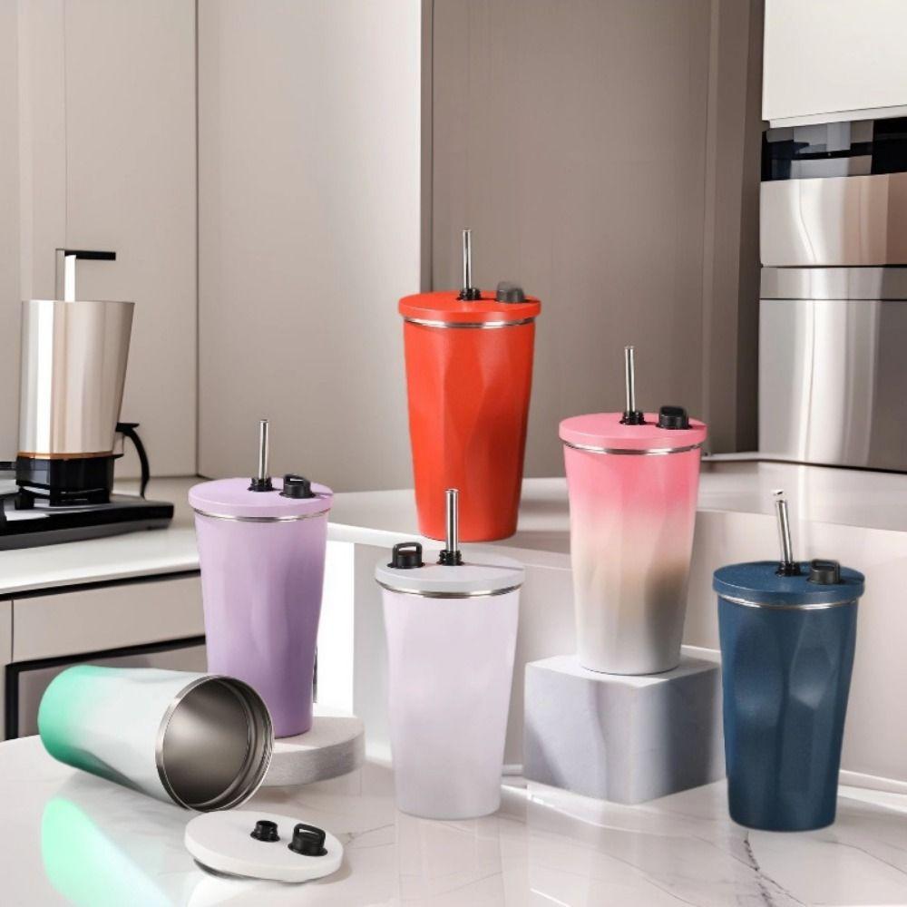 Creative Travel Insulated Tumbler Vacuum Insulated with Straw Stainless Steel Thermal Mug 600ML BPA Free