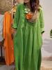 Green Loose Fit Long Dress with Pockets, Casual Flowy Maxi Dress In Multiple Colors