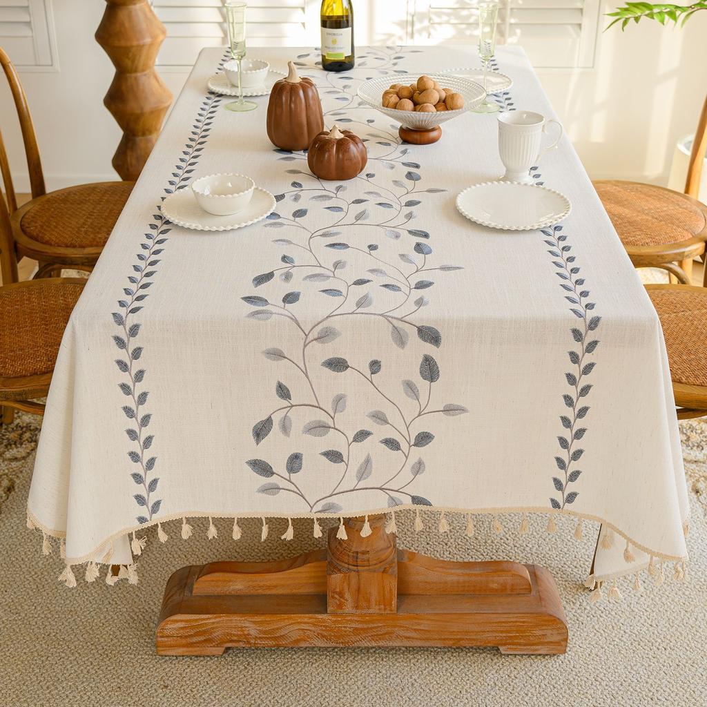 Small Fresh Fabric Tablecloth Simple Modern High-Grade Embroidery Rectangular Dining Table Cloth Coffee Table Cloth Cover Towel