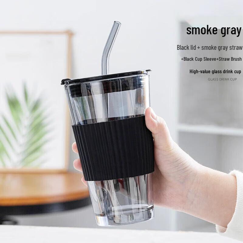 Portable Glass Coffee Cup with Lid and Straw