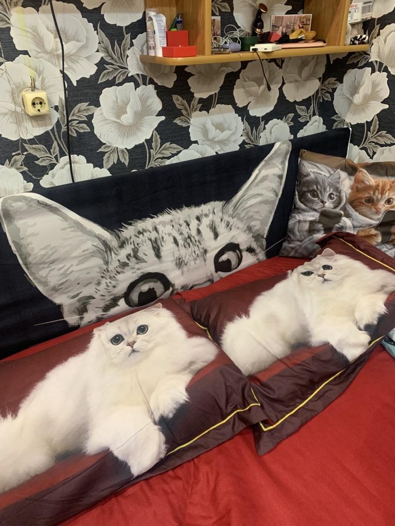 Cat Pattern Bed Head Cover Elastic Headboard Cover Washable Quilted Head Cover for 1.5m Bed