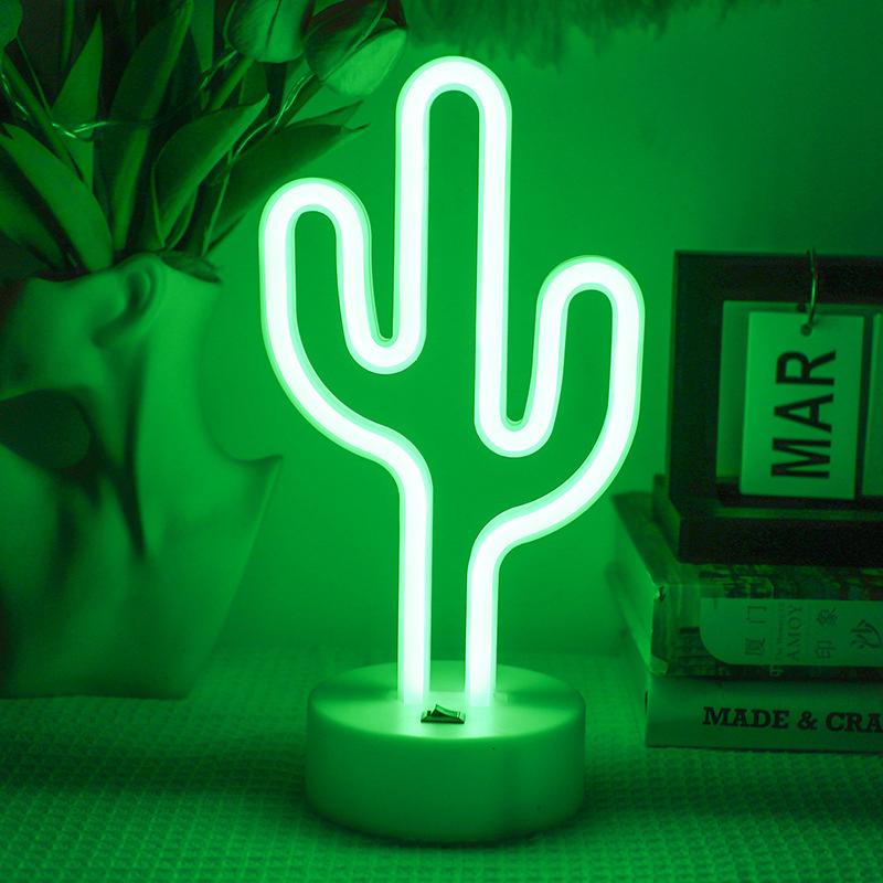 LED Table Lamp Cactus Vibrant Neon Lights Battery/USB Bedroom Birthday Wedding Christmas Tree Party Decoration Gifts for Boys