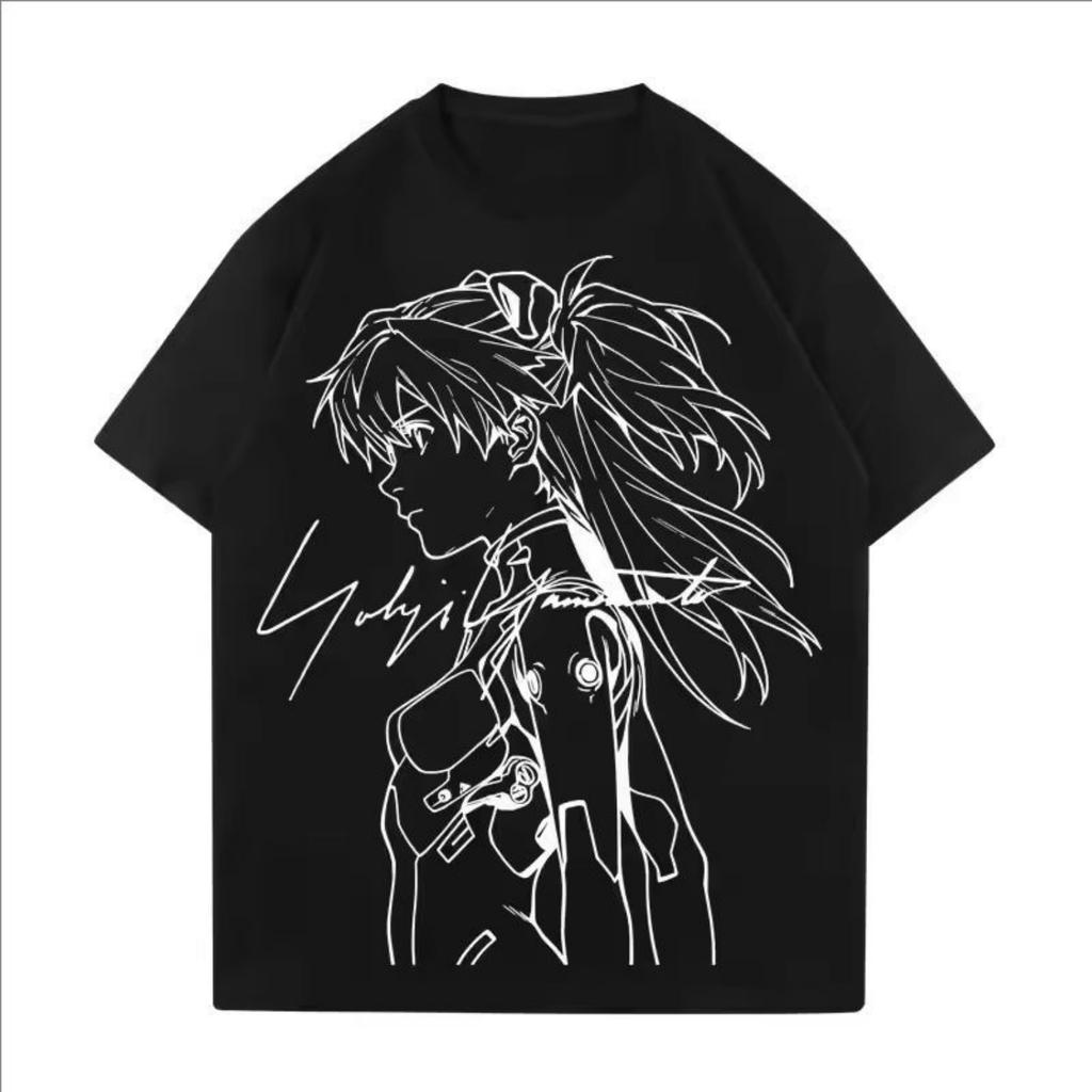Anime EVA Lingboli Asuka Pattern Printed Cotton T-shirt For Men And Women Loose Short Sleeve Fashion Casual T-shirt Top