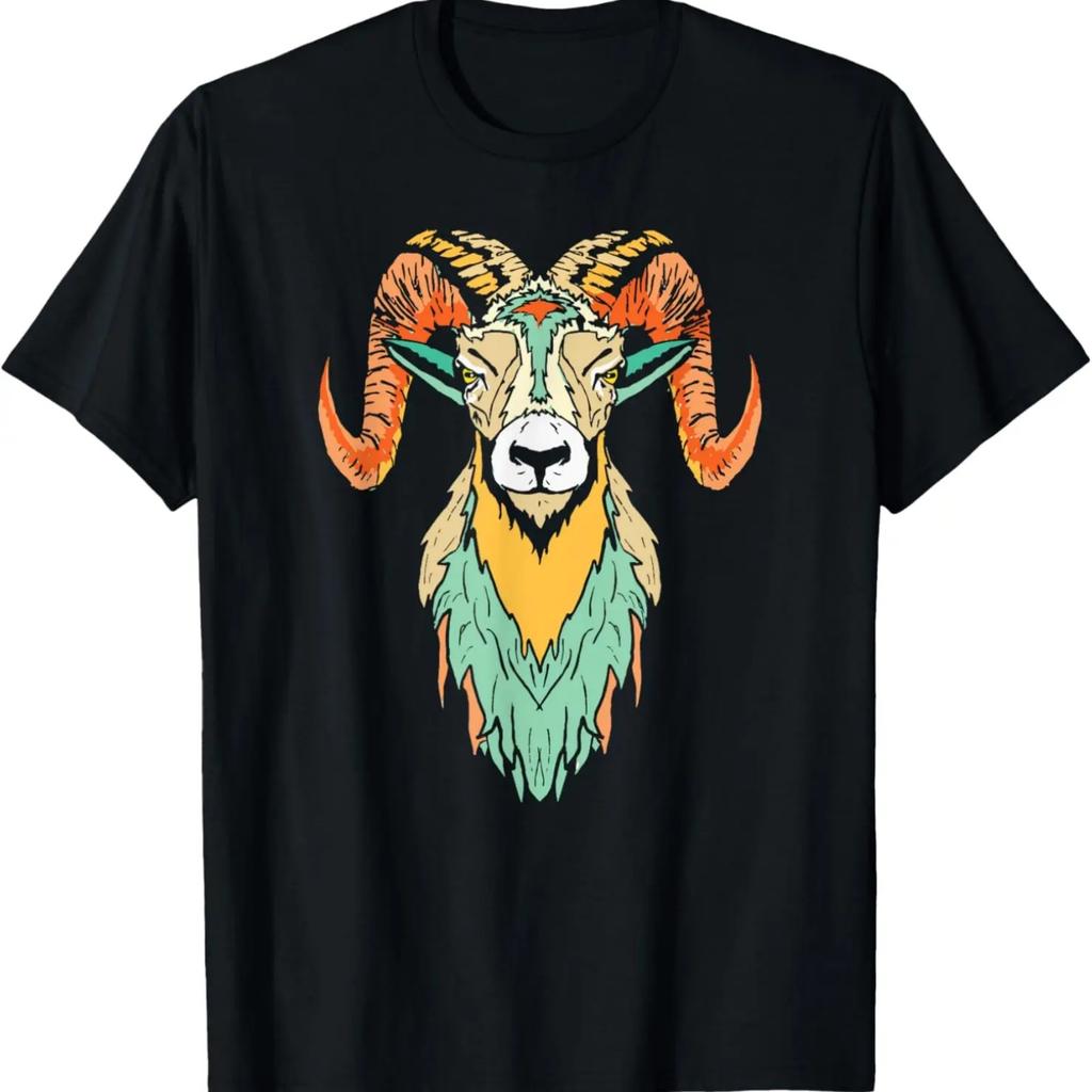 Artistic Big Horn Sheep Psychedelic Ram Head Sketch Graphic T-Shirt