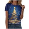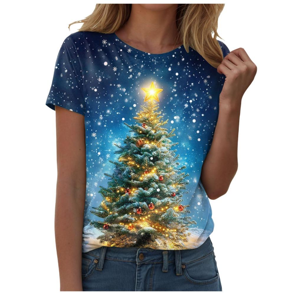 Women's Round Neck Short Sleeved T-shirt, Paired with a Charming Christmas Tree Gift Snowman Print Top