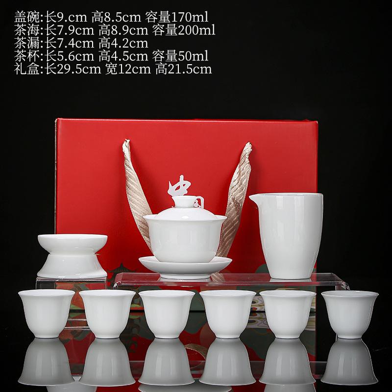 White Porcelain Ceramic Kung Fu Set for Home Use, Living Room Gaiwan Tea Cup, Gift Box with Custom Logo