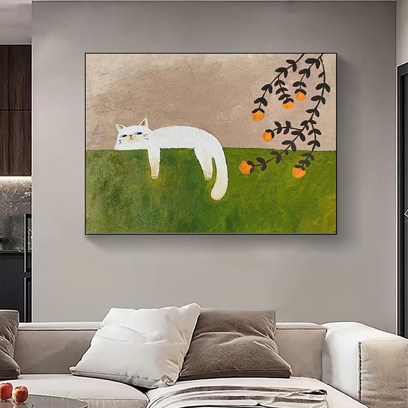 Lilang Minimalist Lazy Cat Canvas Wall Art