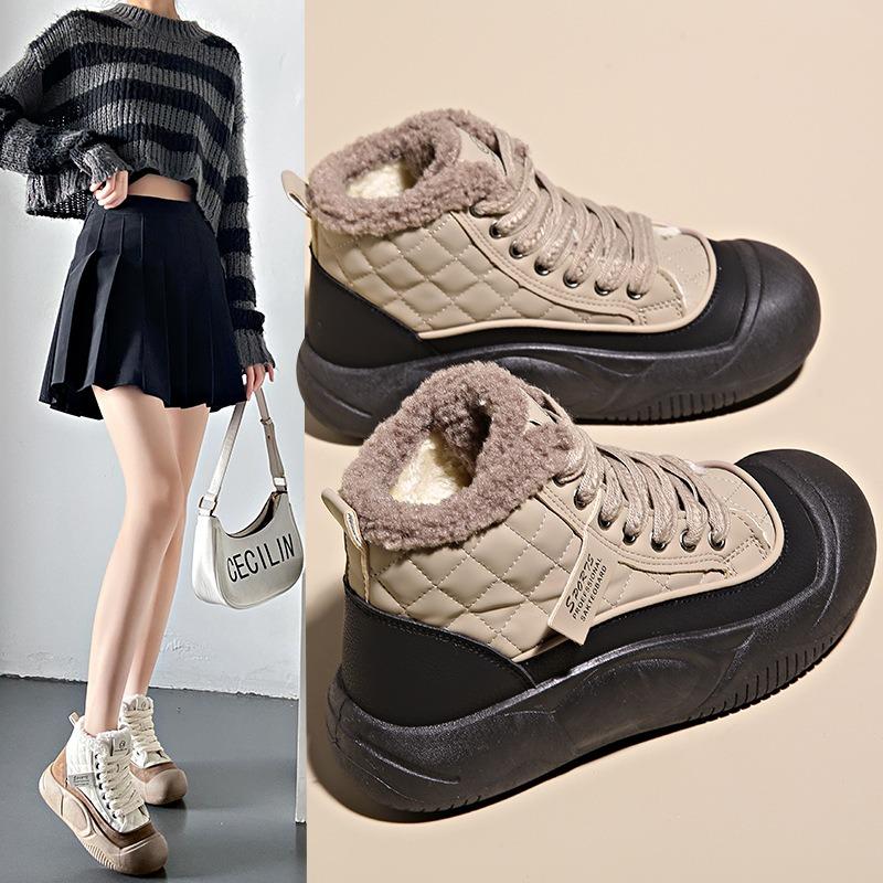 High-top Shoes Women's Winter New Velvet Women's Cotton Shoes Versatile Bread Shoes Platform Snow Boots Tide