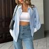 Women Spring Fall Button Down Stripes Shirt Casual Loose Collared Long Sleeve Oversized Blouse Shacket