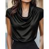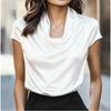 2026 Spring Autumn Office Draped Collar Flowy Short-Sleeve Blouse - Stylish Elegant Versatile 100% Polyester Women's Shirt