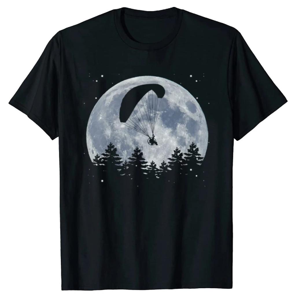 Funny Paragliding Flying Parachute Moon T Shirts Summer Style Graphic Cotton Streetwear Short Sleeve Birthday Gifts T-shirt Men