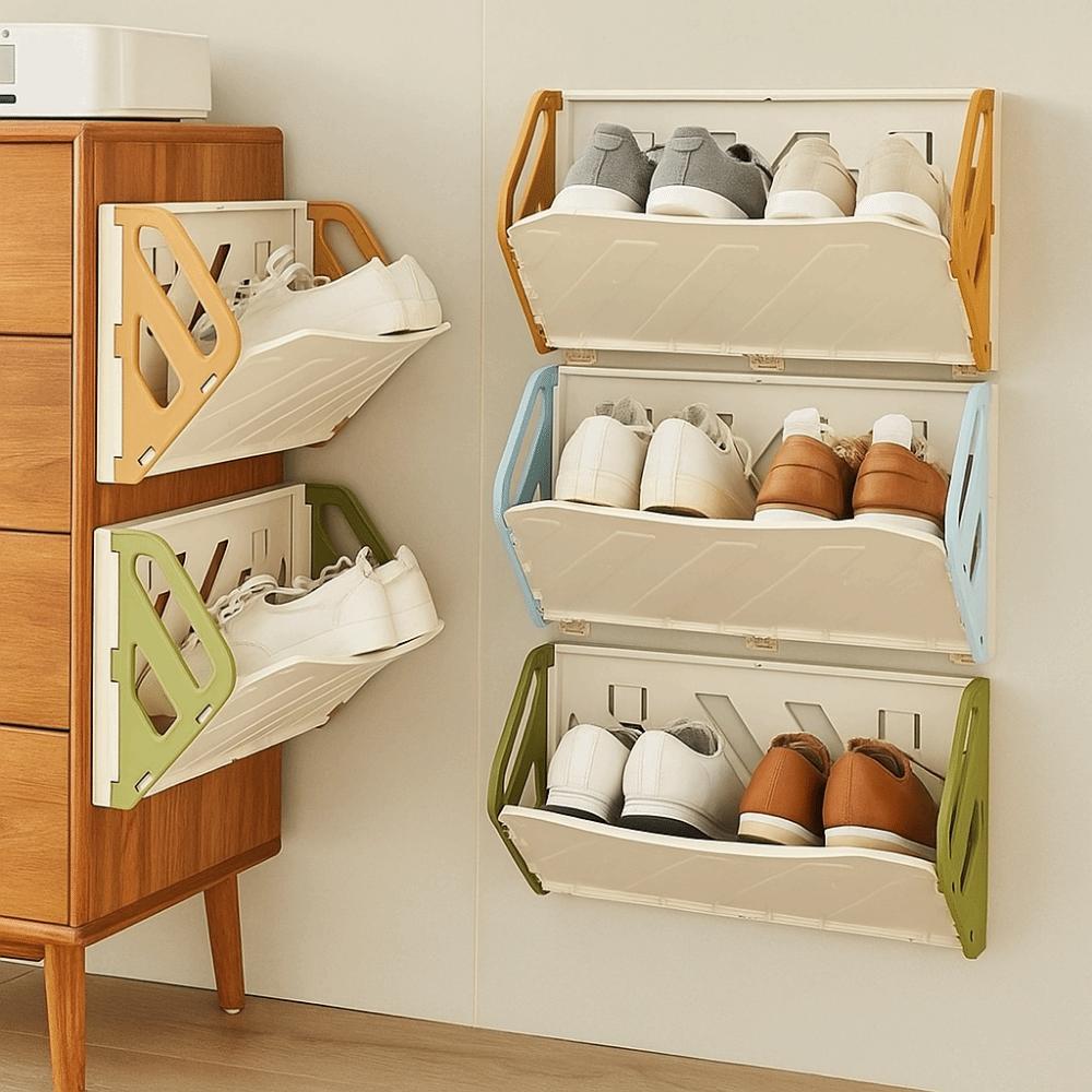 Practical Plastic Folding Shoe Rack Large Capacity Space Saving Wall-Mounted Shoe Rack No Punching Hidden Storage Shelf Entryway