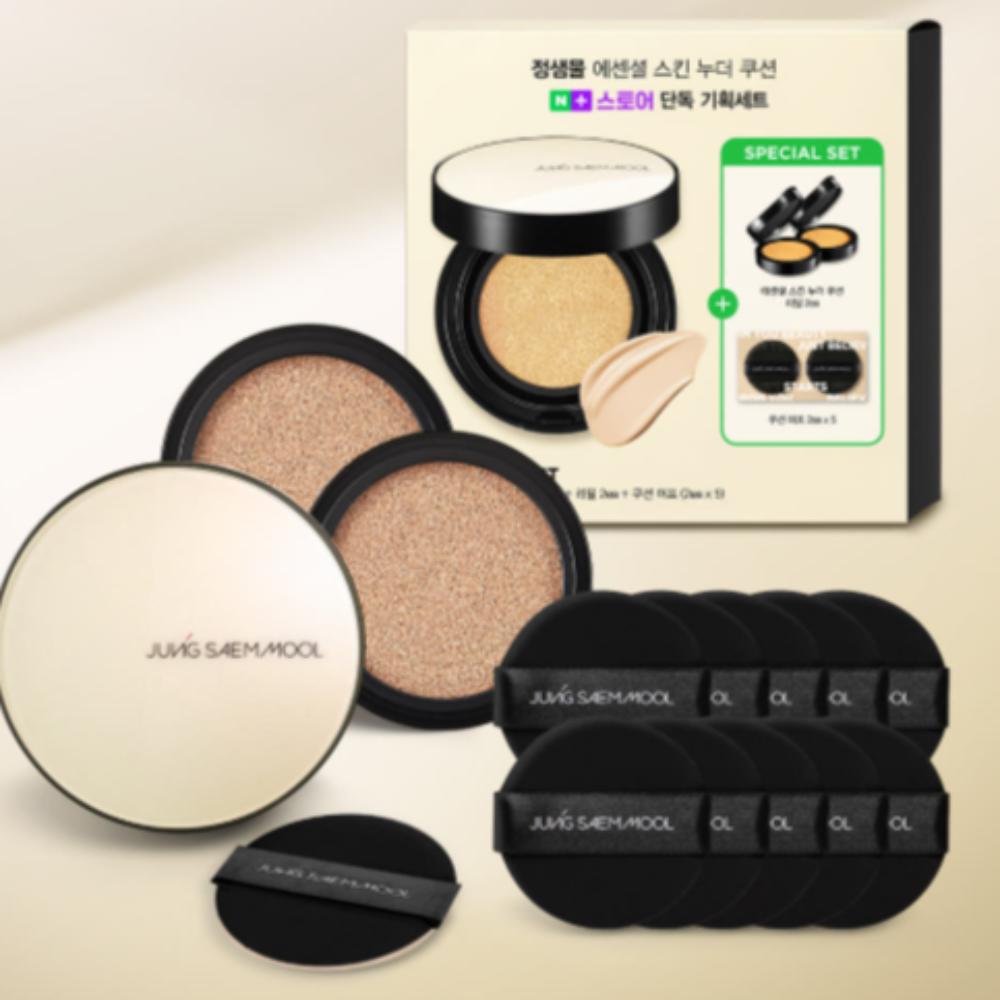 JUNGSAEMMOOL, Essential Skin Nuder Cushion Set, Korean cushion foundation with refills, K-beauty value set, dewy finish cushion, natural coverage foundation, Jung Saem Mool cushion refill, professional makeup artist cushion, cushion puff set, long-lasting glow cushion, SPF50 cushion foundation.
