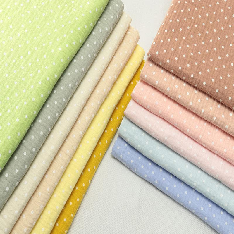 Soft Dot Print Cotton Sewing Fabric Crepe Double Layer Gauze Cloth Cotton Skirt Pajama Cotton Fabric 100*135cm