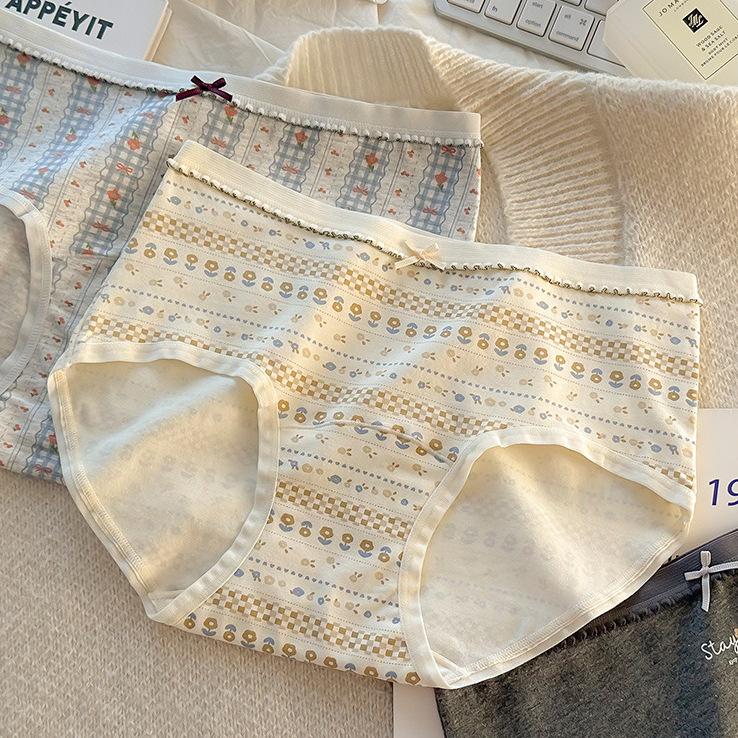 Ladies Spring and Autumn New Retro Small Floral Cotton Extended Crotch Waist Triangle Briefs