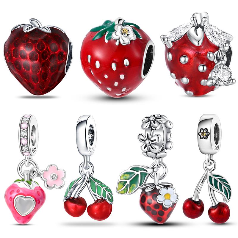 925 Silver Strawberry Cherry Charm Beads for 3mm Bracelets Necklace DIY Jewelry Fine Gifts Birthday Present