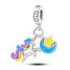 Sweet Romance 925 Silver Rainbow Unicorn Charms Beads Fit 3mm Bracelets DIY Jewelry Making Shining Dreamy