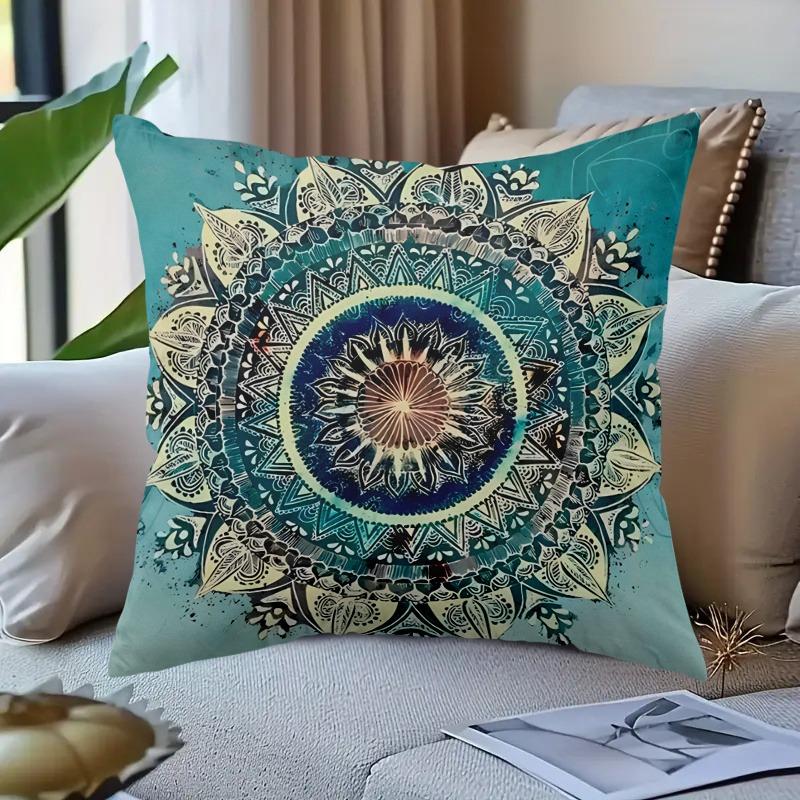 1 Piece, Traditional Mandala Blue Print, Four-season Pillow Cover, Polyester Material, Machine Washable with Zipper, Skin-friendly Cushion Cover