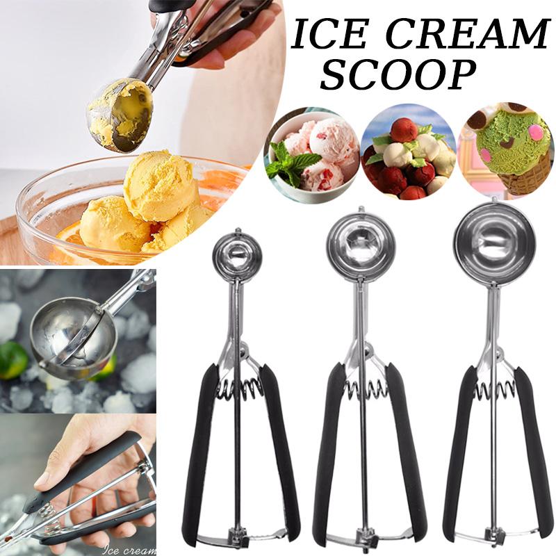Stainless Steel Ice Cream Spoon 3/4/5cm 1pc Multifunctional Fruit Potato Mash Scoop with Spring Handle Kitchen Tool VIE LENTE