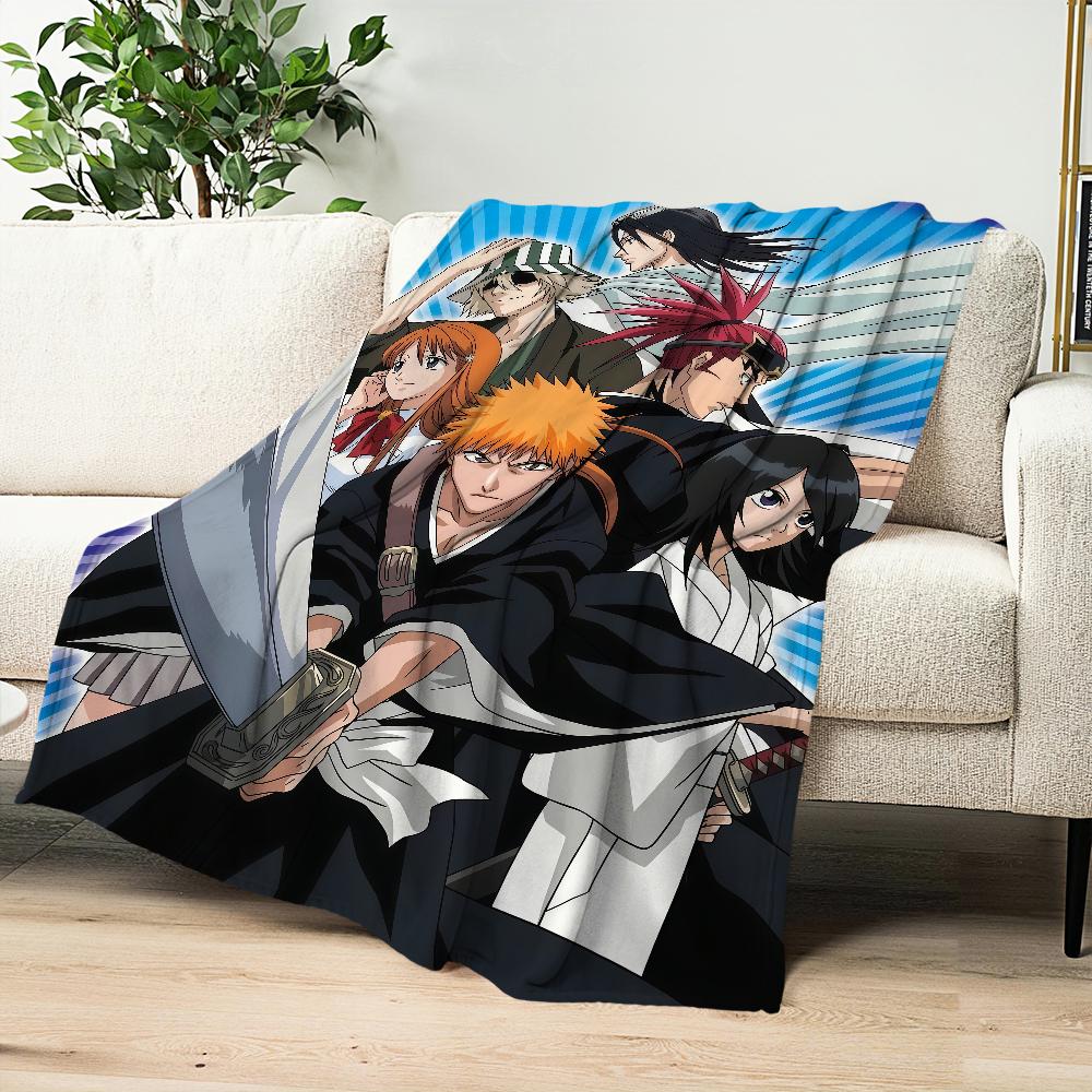Hot-blood Manga Anime B-bleach Blanket Flannel Warm Comfort Soft Plush Blanket for Sofa Living Room Office Bedroom Travel Gift