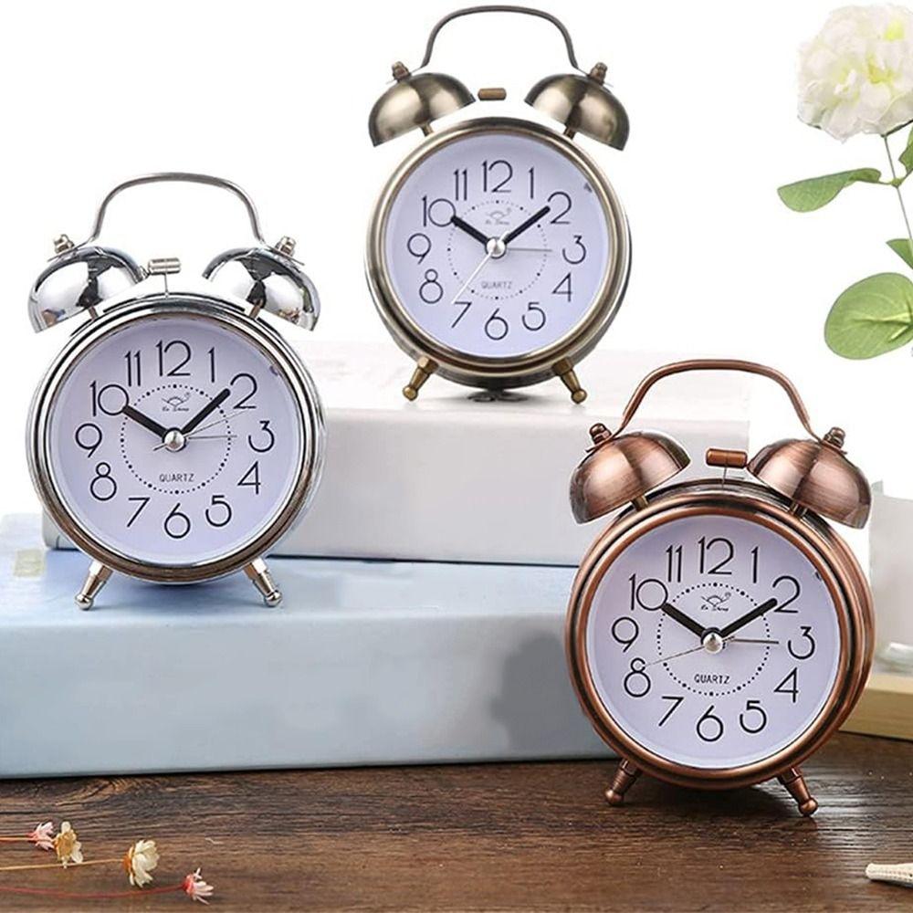 Creative Classical Alarm Clock Mute Type Super Loud Bell Alarm Clock Metal Frame with Night Light Retro Alarm Clock