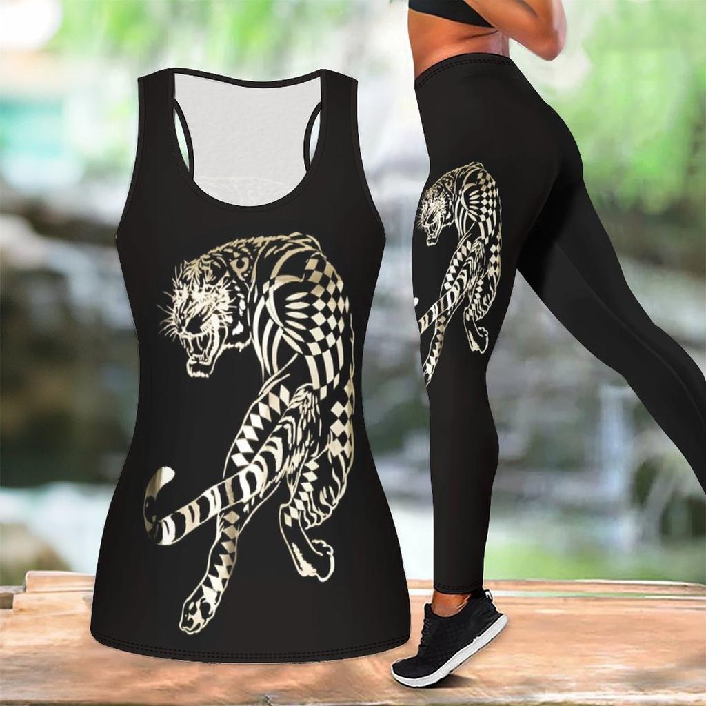 Animal Printed Yoga Outfit for Women Fashion Workout Leggings Fitness Sports Casual Yoga Set Sports Suit