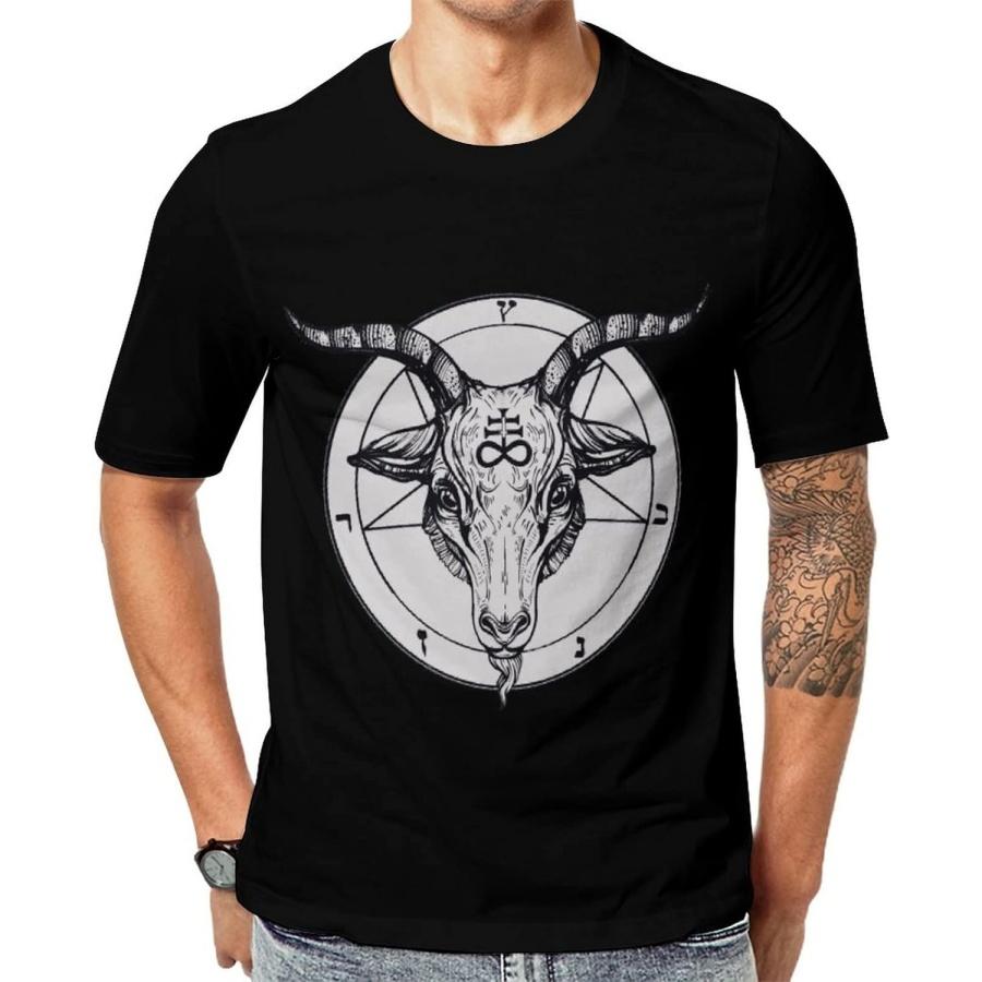 Baphomet Satanic Goat Head Men's T-Shirt Round Neck Short Sleeve Casual Shirt Tee Top L