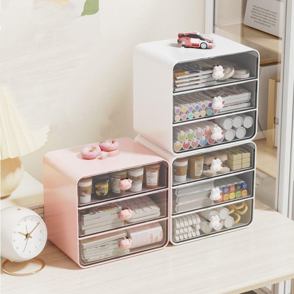 Transparent Design Desktop Drawer Box Multifunctional Space Saving Storage Shelf Large Capacity Cosmetic Storage Box School