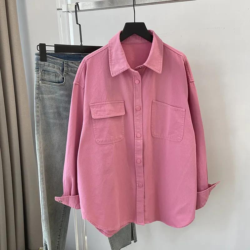 Women's Oversized Casual Shirt Beige Long-Sleeve Lapel Button Down Top